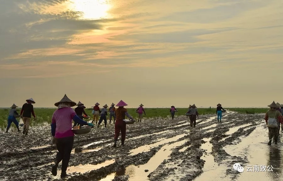 作品说明: 夏日的滩涂,朝阳升起。蛏农(女)们飒爽英姿、趁着赶海的好时光又开始了一天的挖蛏劳动。此景成为了全国特有的一道“风景线”。