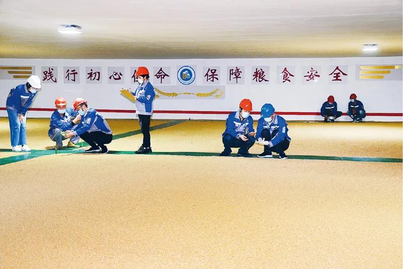 图为2020年4月20日,江苏省无锡市国家粮食储备库工作人员正在进行常规仓情、粮情检查,保障储备粮的内在品质和新鲜度。国家粮食和物资储备局供图