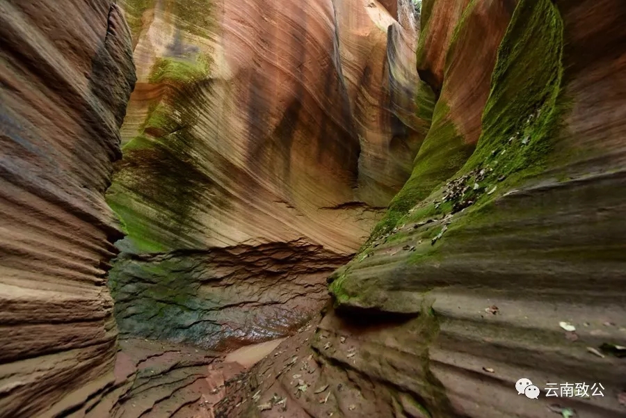 作品说明:被大自然风蚀成千奇百怪形状的峡谷缝隙内,依附石头而生的苔藓类植物茁壮生长着,显示出生命的顽强韧劲。翠绿的颜色在红色石壁间分外惹眼,令人炫目。