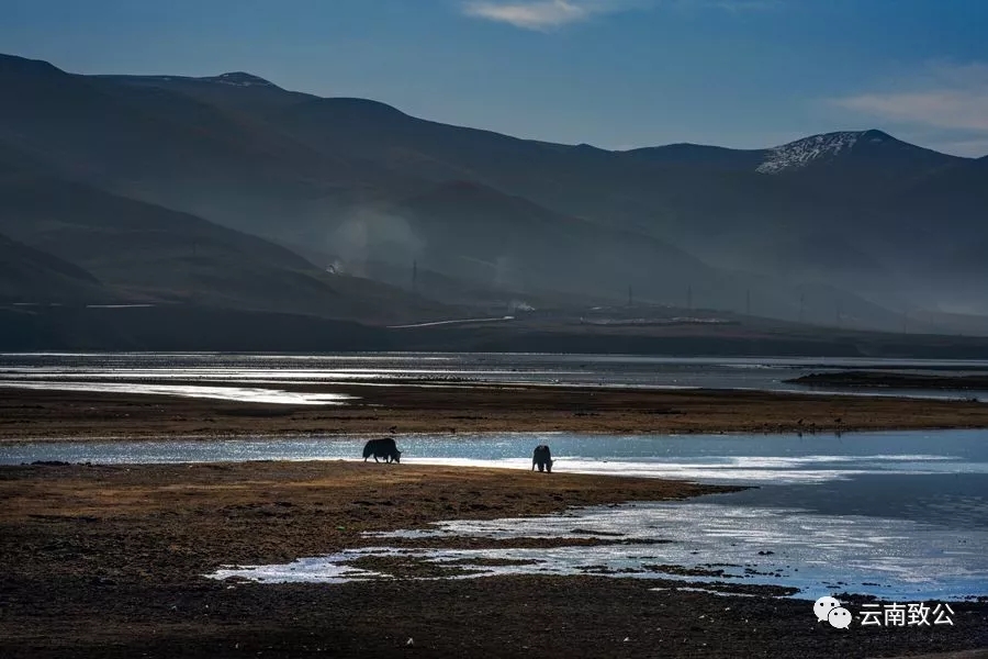 作品说明:西藏的清晨是神秘的颜色,天空还有一些昏暗。牛羊在河边喝水,一切都那么美好。