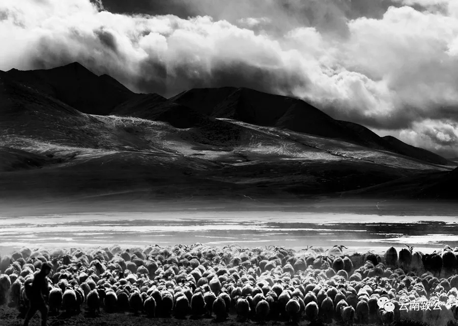 作品说明:成群的牛羊在雪山下,远远望去像是天空中的云朵,又像是皑皑的白雪,不知是山上的雪落到了山脚,还是天上的云压了下来。