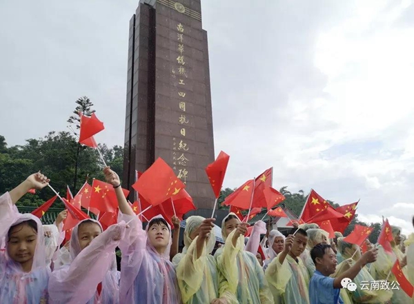 活动中,举行了庄严的升国旗仪式,瞻仰"南侨机工纪念碑"、少先队员敬队礼,唱少先队队歌、齐唱《我和我的祖国》、参观纪念馆等内容。