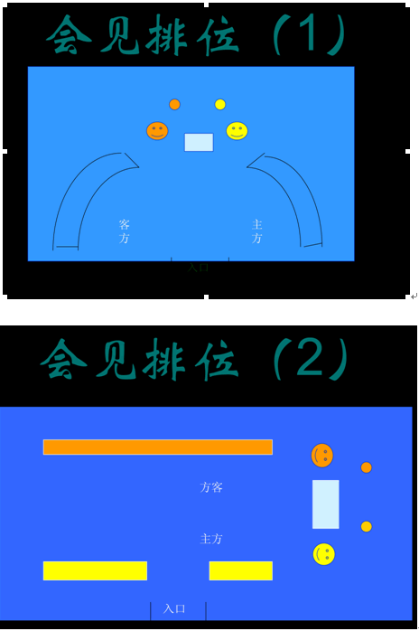 客方陪见人员在主宾一侧依次就座(主方陪见人员坐左侧)。