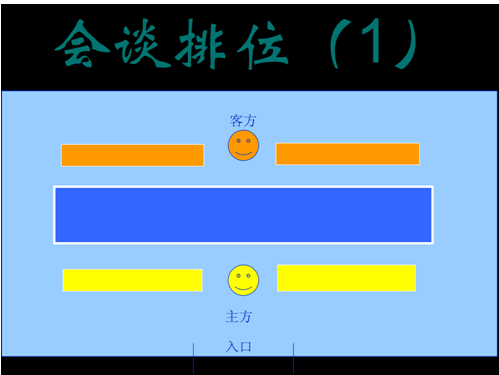 译员和记录分坐主人和主宾后侧(外方译员一般坐主宾后侧)。