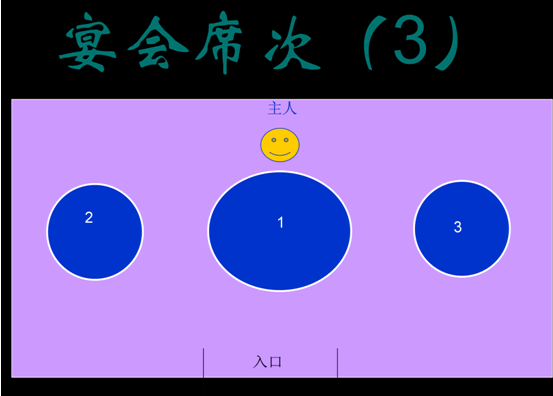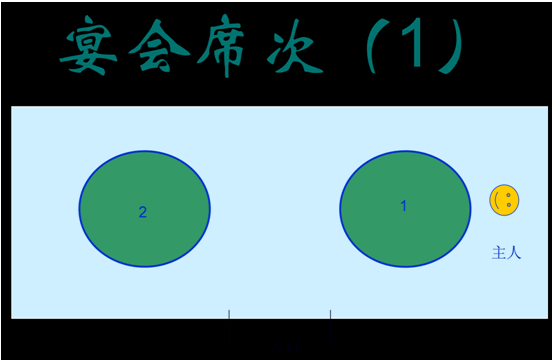 座次的高低以离主人的远近决定,一般以主人的右臂为准,右高左低。