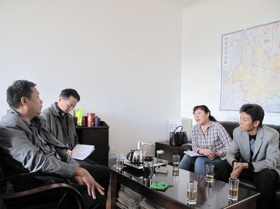 骆瑞麟(右一)、刘卫红(右二)、赵金祥(左一)、普兴礼(左二)座谈交流