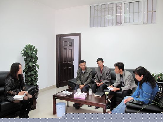 骆瑞麟(右二)、刘卫红(右一)、李晓春(左二)、邹红(左一)座谈交流