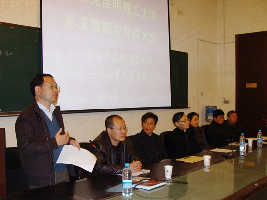 蔡光程代表新一届总支领导班子发言,表示在今后将带领昆工总支的全体党员努力提高政治思想水平,继续坚持"致力为公,参政兴国"的宗旨,在自己的岗位上努力发挥致公党党员的作用,为云南省的经济和社会发展,为昆明理工大学建设区域性特色高水平大学做出更大地贡献。