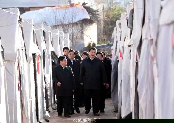 习近平安置点帐篷摸棉被:"暖和不暖和?"