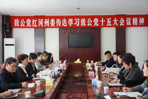 12月14日,致公党红河州委召开专题会议学习传达致公党十五大会议精神。致公党第十五次全国代表大会列席代表周晓泉、李伟,及州委委员、部分党员20多人参加会议。