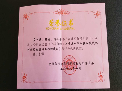 红河州人民政府法制办公室对政协红河州