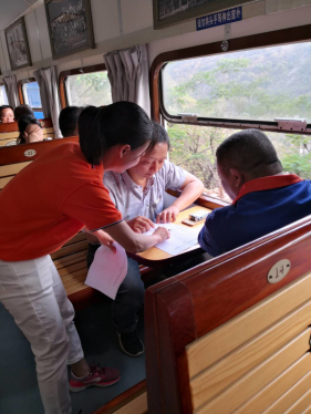 此次调研列车班次共计54名乘客(包含参加调研人员及3名儿童乘客),发放调研表40份,收回40份,提出沿线延长线路、丰富车厢民族文化、增添历史照片等50余条意见建议,基层委员会将认真整理汇总,在调查研究的基础上,围绕发展这个第一要务,积极建言献策。(徐艳)