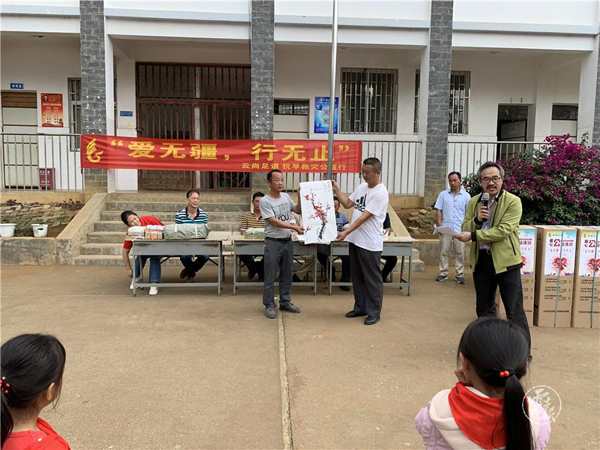 当天,孩子们还收到蒙自市文化馆捐赠的一批儿童书籍,以及由蒙自市瀛洲书画院马文奎、张柏林书画家赠予的十余幅书法、绘画作品。