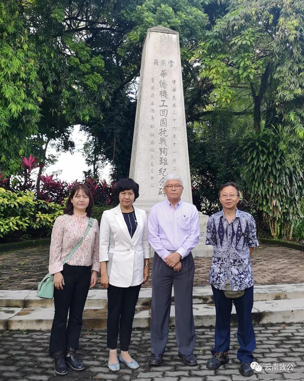 在马来西亚访问期间,代表团在马来亚二战历史协会秘书长陈松青的陪同下,拜谒了雪兰莪华侨机工回国抗战殉难纪念碑并敬献鲜花,向为祖国民族独立解放事业作出巨大牺牲和贡献的南侨机工们默哀致敬。参观了马来西亚陈嘉庚纪念馆,进一步了解了陈嘉庚先生一生倾资兴学、纾难救国、爱国爱乡的光辉事迹。随后代表团与吉隆坡暨雪兰莪中华大会堂会长翁清玉等进行了座谈交流。杨萍向他们介绍了昆明西山南侨机工纪念碑和在德宏畹町修建的南侨机工回国抗日纪念馆的情况,邀请他们适时到中国参观考察学习,共同挖掘、继承和弘扬南侨机工精神。