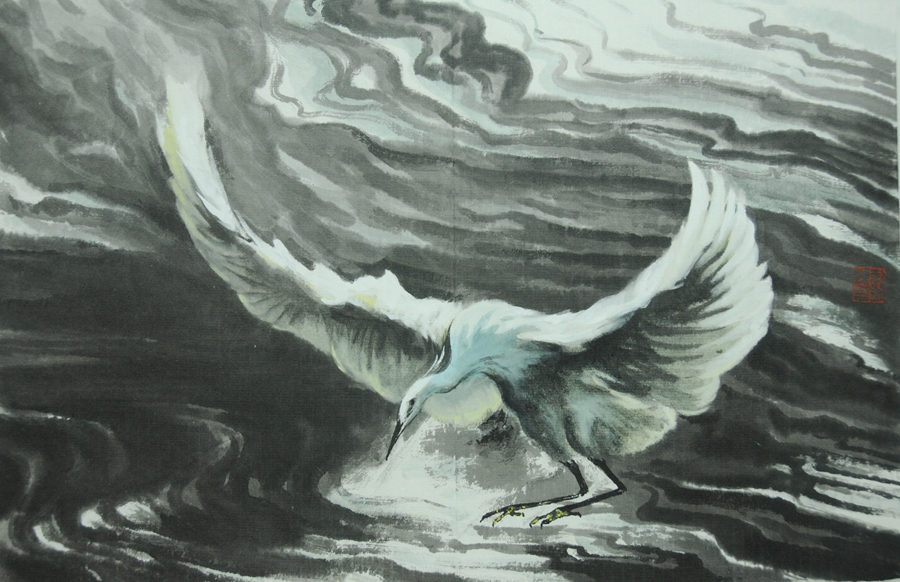 作品名称:《白鹭一飞》 作品尺寸:60cm-40cm
