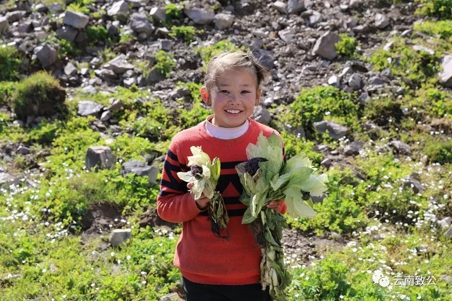 作品说明:哈萨克地区卖雪莲的小姑娘捧着一束雪莲,开心地笑着。
