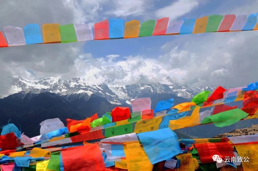 作品说明:自驾采风路过云南梅里雪山,当天天空晴好,多彩的经幡在雪山前随风起舞,吸引眼球。