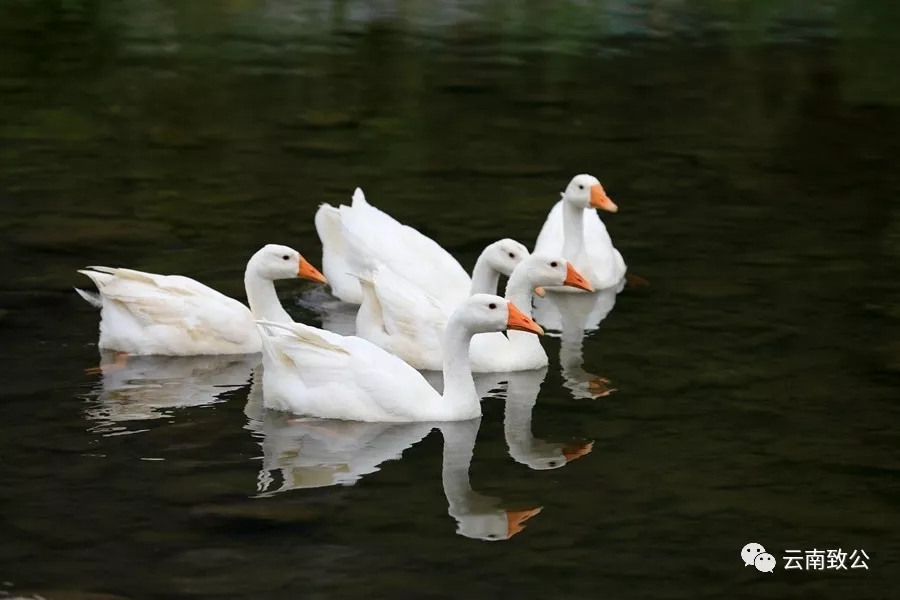 作品说明:平静的湖面上,几只鸭子正自由自在地游来游去。一动一静,和谐自然。