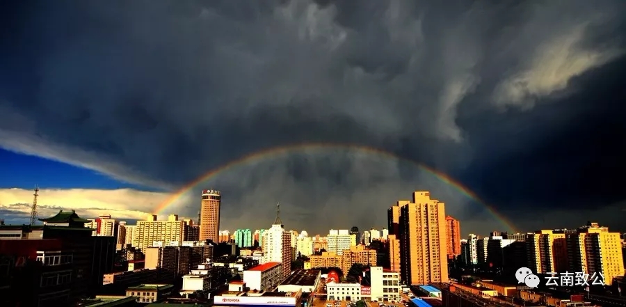 作品说明:方庄是我国上世纪90年代中期建设的国内第一个完整功能的先进小区。2016年8月27日傍晚雷阵雨过后,我发现方庄上空出现彩虹,赶紧拿起相机跑到楼顶,此时彩虹更加亮丽,一道完整半圆的彩虹位于方庄上空,彩虹上方还有许多飘忽的散云,极其壮观。