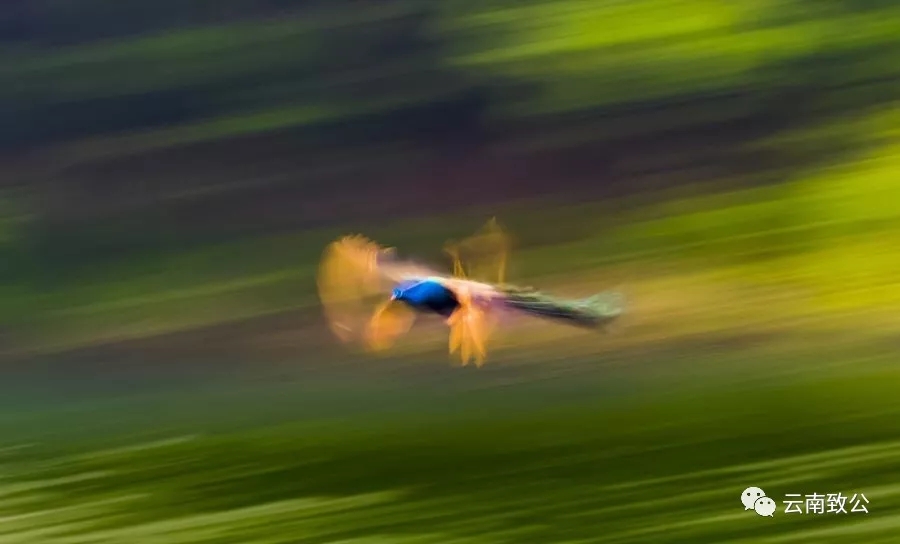 作品说明:作品摄于安徽省万佛湖。这是一只飞翔的孔雀,拍飞翔的鸟儿难,拍慢门的飞鸟就更难!慢门摄影可以用来表现鸟儿的飞翔动感,把握清晰与模糊度的多少是难点。
