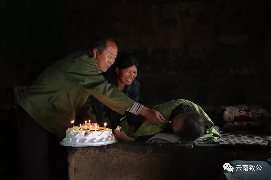 作品说明:河北省涉县王金庄村,一对夫妇给卧病在床的90岁的母亲过生日。