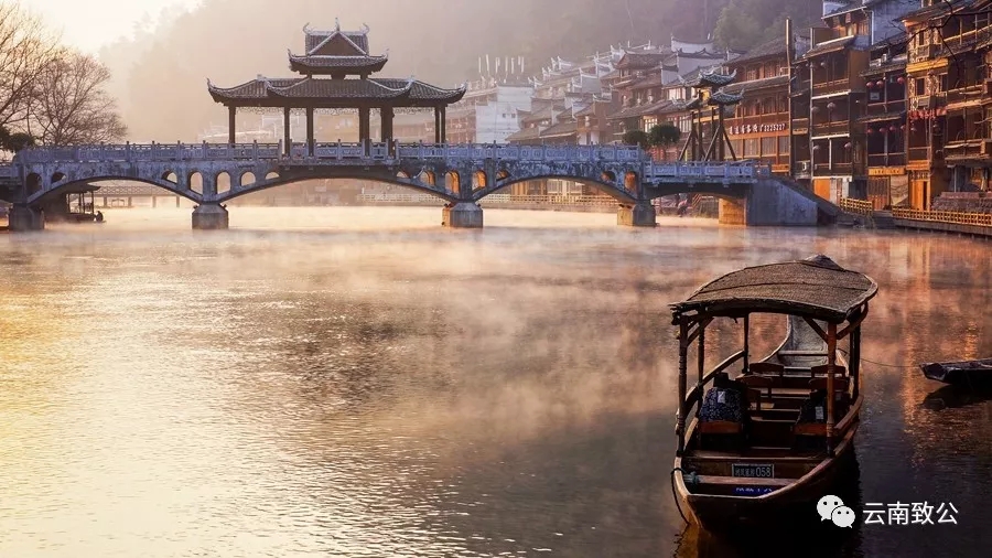 作品说明:凤凰古城,位于湖南省湘西土家族苗族自治州的西南部,曾被新西兰著名作家路易 · 艾黎称赞为中国最美丽的小城,与云南丽江古城、山西平遥古城媲美,享有“北平遥,南凤凰”之美誉。图中一艘小船悠悠的飘在河水之上,水面升起蒙蒙的雾气,古韵悠然。