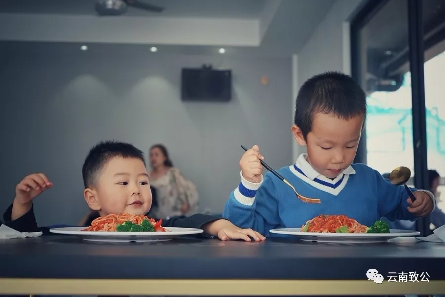 作品说明:两个稚龄幼童面前都放着一盘子好吃的,小一些的弟弟满脸兴奋的看着哥哥的食物想知道他怎么吃,大些的兄长全然不知,正全神贯注的考虑着关于美食的问题。