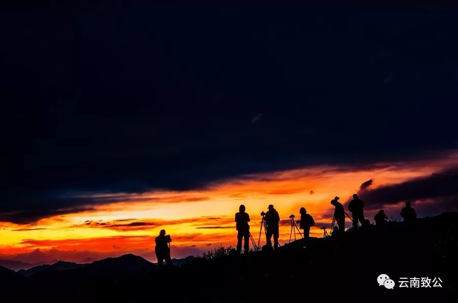 作品说明:轿顶山位于汉源县皇木办事处境内,轿顶山为大相岭山脉东段余脉,呈南北走向,周围75平方公里,顶平而宽阔,四周悬岩绝壁,形如轿顶。山顶的黄昏是绚丽多彩的,立足峰顶,看彩霞昭昭,拍客们纷纷拿起相机记录这似霞似火的灿烂时刻。