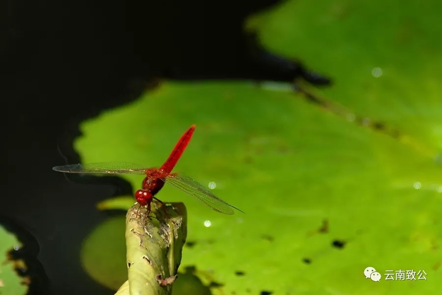作品说明:“知否知否,应是绿肥红瘦。”易安之词刚好合此意境,虽不是海棠,但这蜻蜓之红却胜似海棠红,一抹小小蜻蜓红停留在荷叶之上,虽为残荷,体硕依旧,真可谓绿肥红瘦。