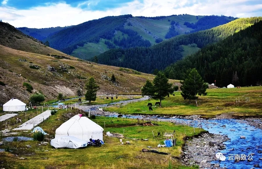 作品说明:2019年暑假到新疆旅游,在布尔津县城去五彩滩风景区的路上拍摄的。新疆是干旱地区,难得见到清澈的山泉。远处的山、近处的水和蒙古包构成了美丽家园的优美画面。