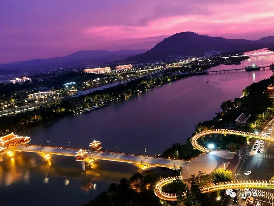 作品说明:夜幕下的南山桥像一把金闪闪的电吉他,弹奏着悠扬的乐曲。远处风景优美、文化底蕴深厚的圆山在玫红色的夕阳映照下像多情的少女向你深情地召唤:美丽漳州等你来。