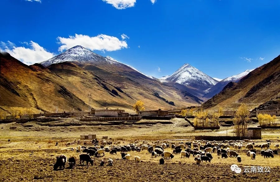 作品说明:美丽的藏区,天是不一般的蓝,最纯净的布也染不出这样的颜色。白云朵朵,连绵不绝起伏不断的雪山庄严的矗立在大地上,山谷中是大片的田野,和数间房屋,近处的田野间是大批的羊群,散落在各处觅食。藏民们在这里生活,种植青稞、放牧,清澈的日光亮度极强,为这里的一切增添暖融融的温度。