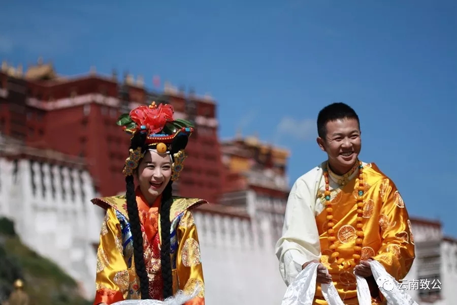 作品说明:在拉萨布达拉宫前,看见一对新人在拍新婚照,充分领略到西藏人民的幸福生活,以及民族大团结的繁荣昌盛。