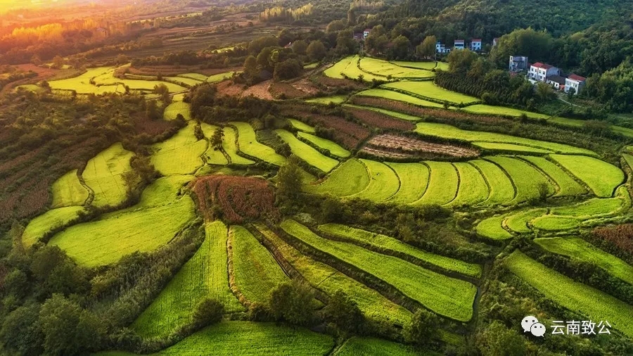 作品说明:湖北荆门京山市,金色梯田和几家农户,中国美丽乡村建设的缩影。