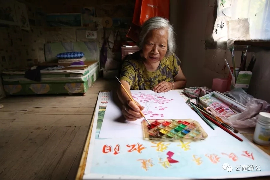 作品说明:山村婆婆虽然身在山村但是有自己的艺术追求,她正在认真的画画。