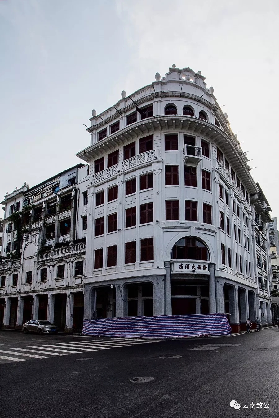作品说明:在梧州经济腾飞的今天,也不忘保留全国重点文物——广西第一的“新西酒店”,这为后人知晓梧州的发展历史有着巨大的意义。