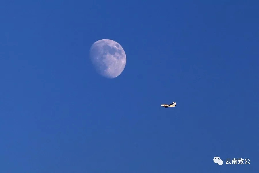 作品说明:飞机在天空中翱翔,偶然与月球一同入境,仿佛嫦娥奔向月球一般。