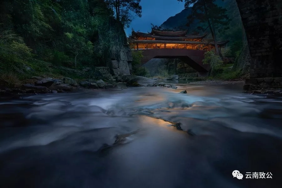 作品说明:水天一片,蓝的天与蓝的水,不知谁是谁的倒影,宽阔的水面上,一座长桥跨河而卧,桥上暖黄的灯光与冷蓝的水天形成强烈的明暗对比。