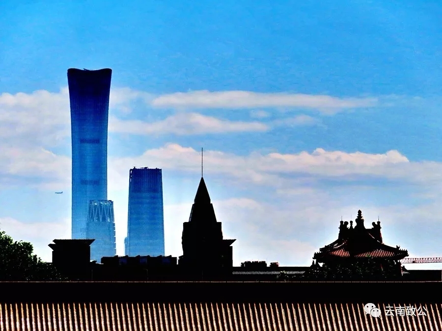 作品说明:这是2019年4月30日在故宫参观时,以北京新地标大楼—中国尊为背景的照片。此时一架飞机恰好远远地从南向北飞去,仿佛从遥远的古代穿越而来,我赶紧找好位置,此时飞机正好穿过中国尊,我按下了让古代的建筑与最现代中国尊建筑同处一框别具一番风味的照片。