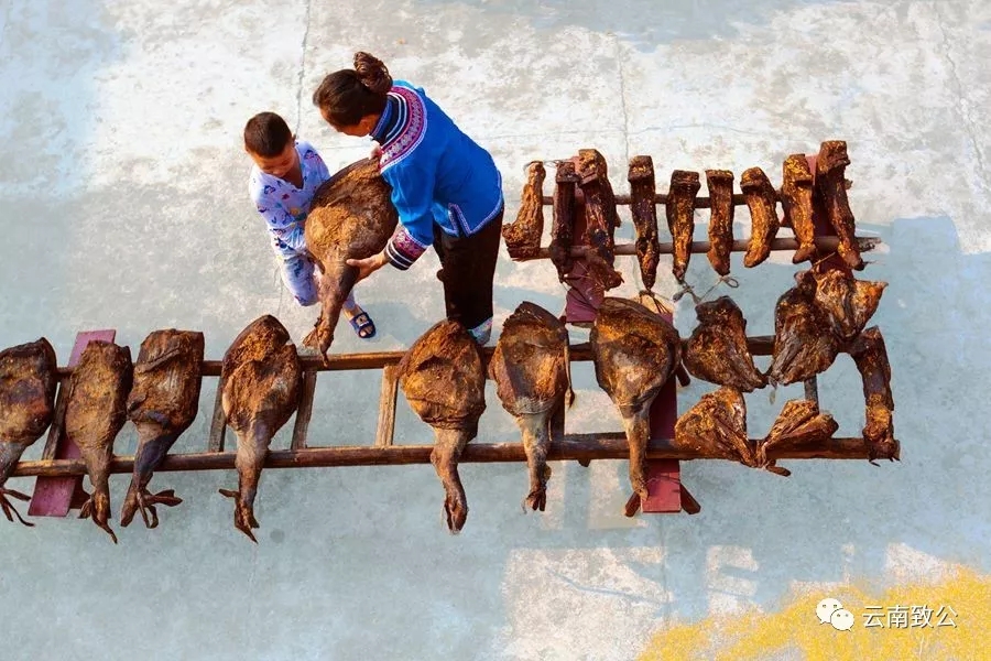作品说明:土家腊肉传承已有几千年的历史,是湘西地区土家族过年必备食物。土家腊肉色泽焦黄、肉质坚实、熏香浓郁、风味独特。为了自力更生,脱贫致富,湘西龙山县土家族老百姓制作了大量本地特色产品,吸引游客、发展经济,这是他们晒腊肉的情景。