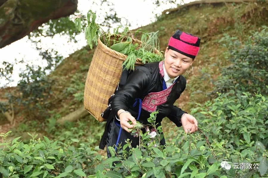 作品说明:采茶的姑娘穿着传统的民族服饰,背着竹篓,满面笑容的从茶树上采下片片嫩叶,这笑容有收获的喜悦有对生活的美好期盼。