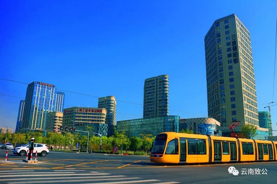 作品说明:电车像一个个可爱的蚕宝宝爬行在公路上,为人们的出行带来便利。