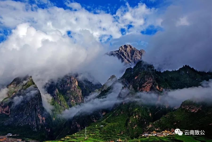 作品说明:2019年6月23日摄于甘肃甘南藏族自治州迭部县热尕那村,这里四周秀峰环绕,被誉为甘肃的“香格里拉”,去时一路上阴云密布,但到达后突然云开雾散,阳光灿烂,急忙举相机连续拍,半小时后,阳光又被阴云遮住了。