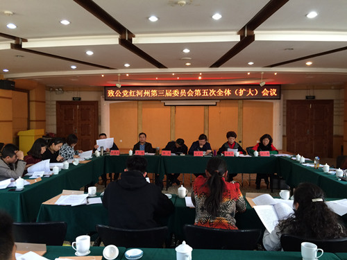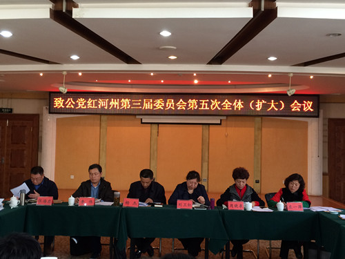 3月11日,致公党红河州委三届五次全体(扩大)会议在个旧召开。会议认真学习了中共十八大、十八届三中、四中、五中全会精神,习近平总书记系列重要讲话精神、中共红河州委七届十二次全会精神;致公党中央十四届四次全会精神、致公党云南省委六届五次全委(扩大)会议精神;审议通过《致公党红河州第三届委员会常务委员会工作报告》。致公党云南省委专职副主委刘卫红同志、中共红河州委统战部常务副部长杨杰同志莅临指导并讲话。
