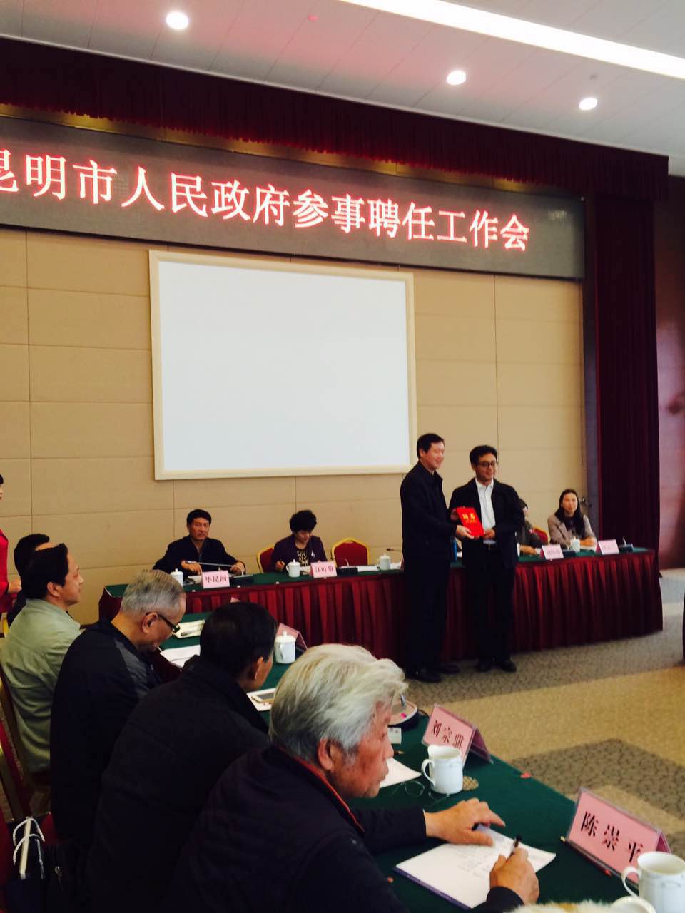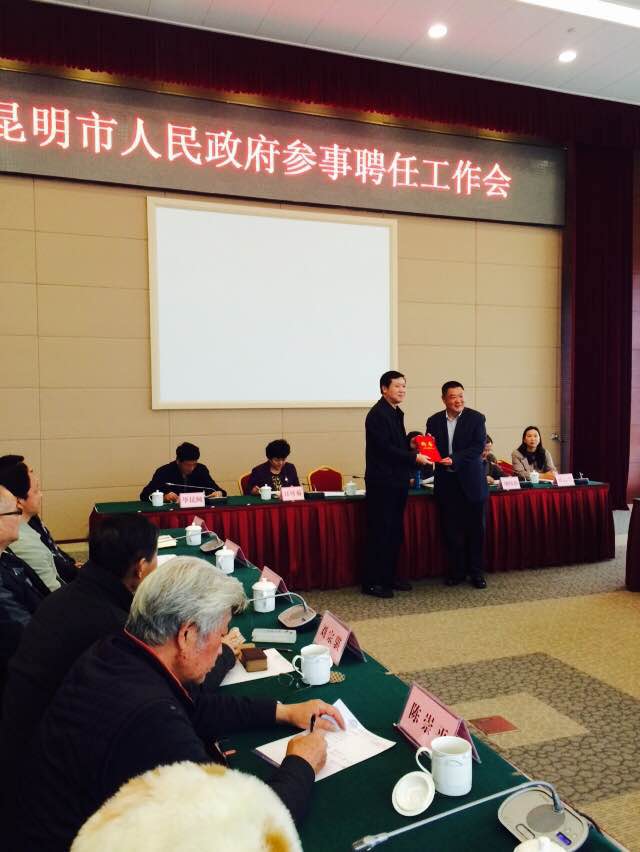 3月29日上午,昆明市人民政府召开市政府参事聘任工作会,致公党昆明市委副主委王延春,秘书长王俊伟和市委会常委魏明参加了会议。