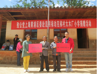 捐赠仪式上,致公党上海黄浦区委向大木厂小学捐赠了一批图书和一台电脑,向2位教师颁发了园丁奖,为全校11名学生配备了书包、学习用具和运动服,在学校设立了致公爱心书屋--大木厂小学流动阅读点,本次活动捐赠共计3万元。李冰晶主委代表致公党昆明市委和大木厂小学向马进主委赠送了感谢牌。受致公党黄浦区委委托,致公党昆明市委具体负责协办了本次捐赠活动相关事项。