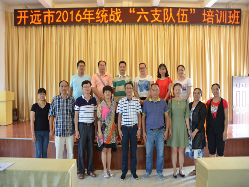 2016年8月25至26日,在由市委统战部、市社会主义学校联合举办的开远市2016年统战"六支队伍"培训班的培训会上,全市各民主党派主委、副主委、专干等民主党派代表人士,工商联兼职副主席(副会长)等非公经济人士,无党派和党外知识分子代表,少数民族代表人士,港澳台侨代表人士,新社会阶级代表人士共150人参加培训。