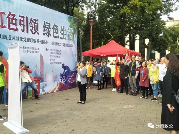 为深入贯彻习近平总书记关于生活垃圾分类工作的系列重要批示指示精神,落实《住房和城乡建设部等部门关于在全国地级及以上城市全面开展生活垃圾分类工作的通知》,9月6日,致公党云南省委机关干部参加了五华区华山街道党工委、办事处举办的"红色引领、绿色生活"垃圾分类主题宣传活动。