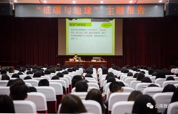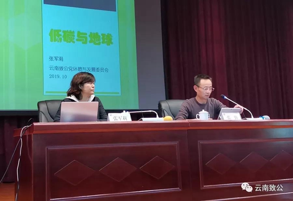 致公党云南省委环境与发展工作委员会委员、省环境科学研究院高级工程师张军莉,基于低碳概念产生的根源,以科普的方式介绍全球气候变暖的原因及其可能产生的影响,提倡大家践行低碳生活方式,保护我们赖以生存的地球。培训内容生动有趣,获得了老师和学生的认可和称赞。