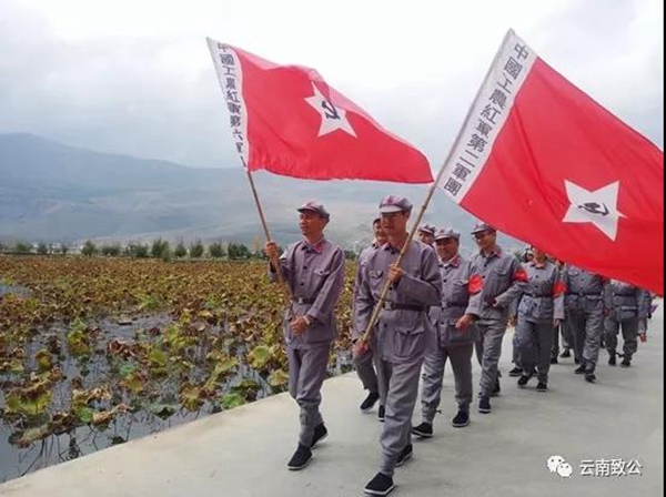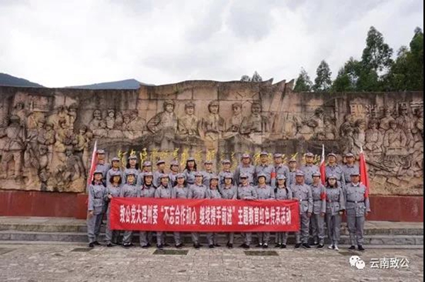 活动中,党员们还到红军长征过鹤庆时走过的母屯村,近距离观看了红军长征时留下的老物件,聆听当年红军巧渡金沙江的故事,模拟了战略会议的情景,并从母屯村基地出发,一路高唱红歌,沿红军曾走过的路线重走红军路,追寻红军的革命足迹。